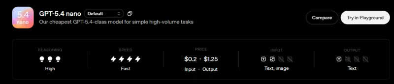 なかでも注目したいのが、低コストかつ高速に回しやすい OpenAI の GPT-5.4 nano です。