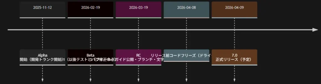 ただし、ベータ版の公開日が一部調整された例もあり、正式版直前までは細かな変更が入る可能性があります。